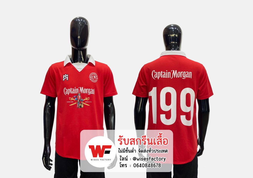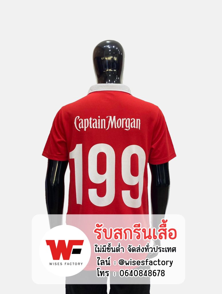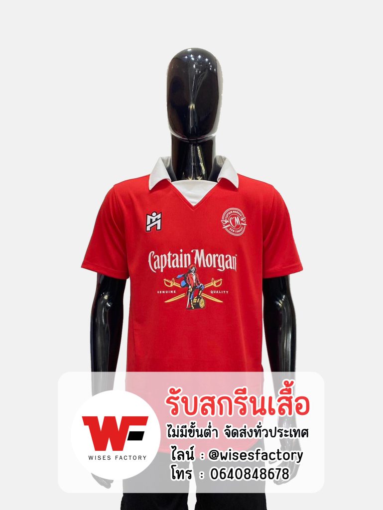 ทำชุดทีมฟุตบอล ทำเสื้อบอลพร้อมสกรีน ทำชุดทีมกีฬา CAPTAIN MORGAN สีแดงล้วน